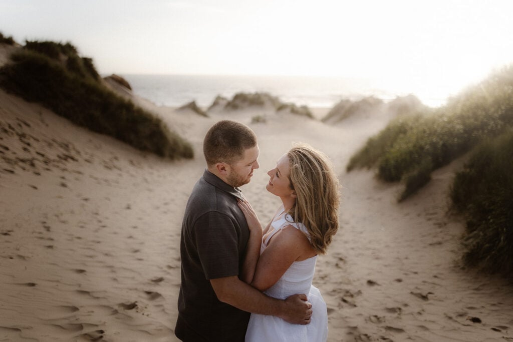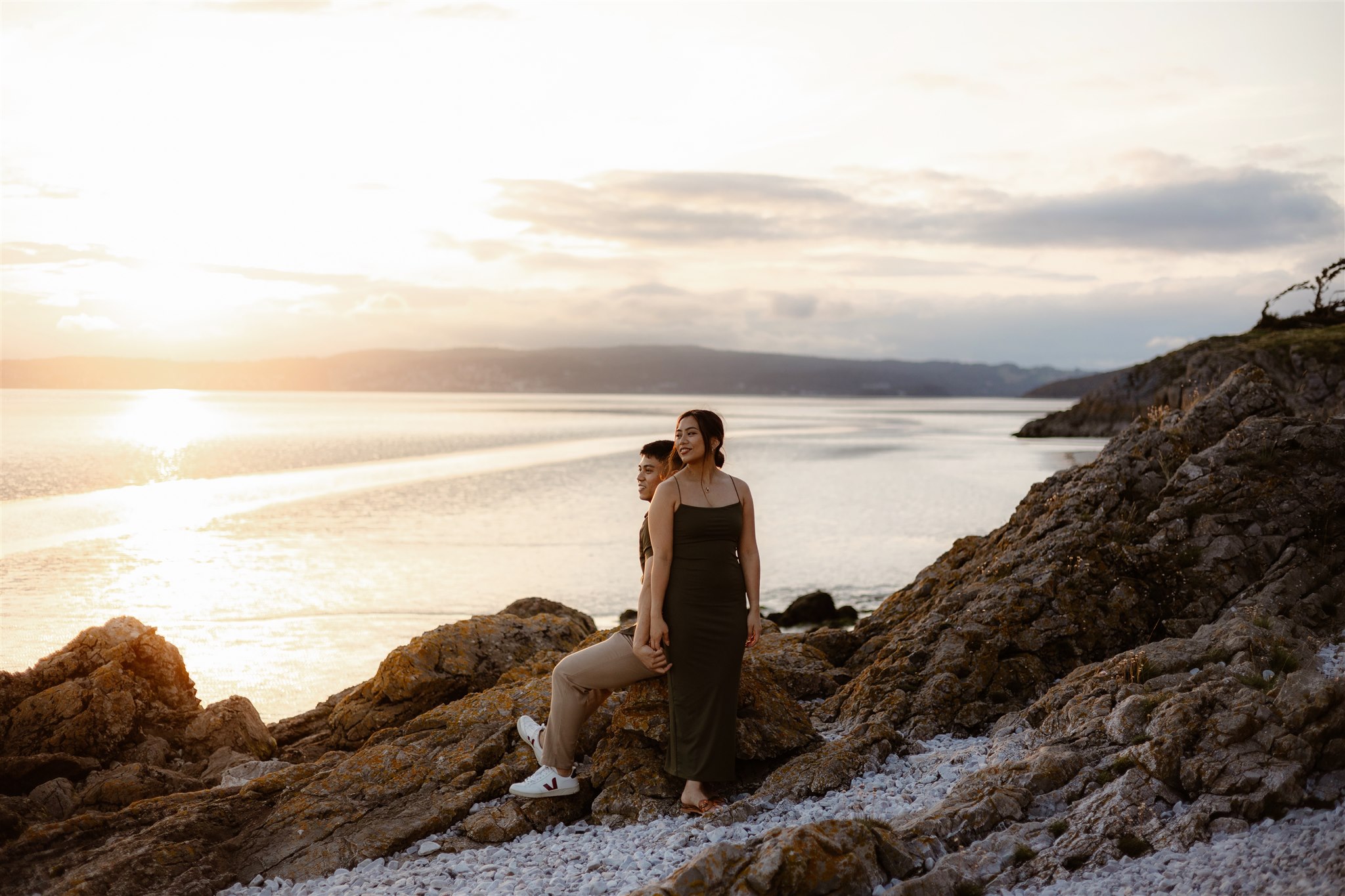 Now few couples or photographers are too focused on the sunrise engagement session, so ‘the golden hour’ generally refers to the hour just before sunset. Planning your engagement session to account for this requires you to know exactly when the sun will set based on the time of year and the location for your shoot. Your photographer should be able to advise you on this. However, there are plenty of weather apps or websites that will give you the exact moment the sun will set. Armed with this time in mind, you should plan your session aiming for you to be on with your session when the golden hour begins.